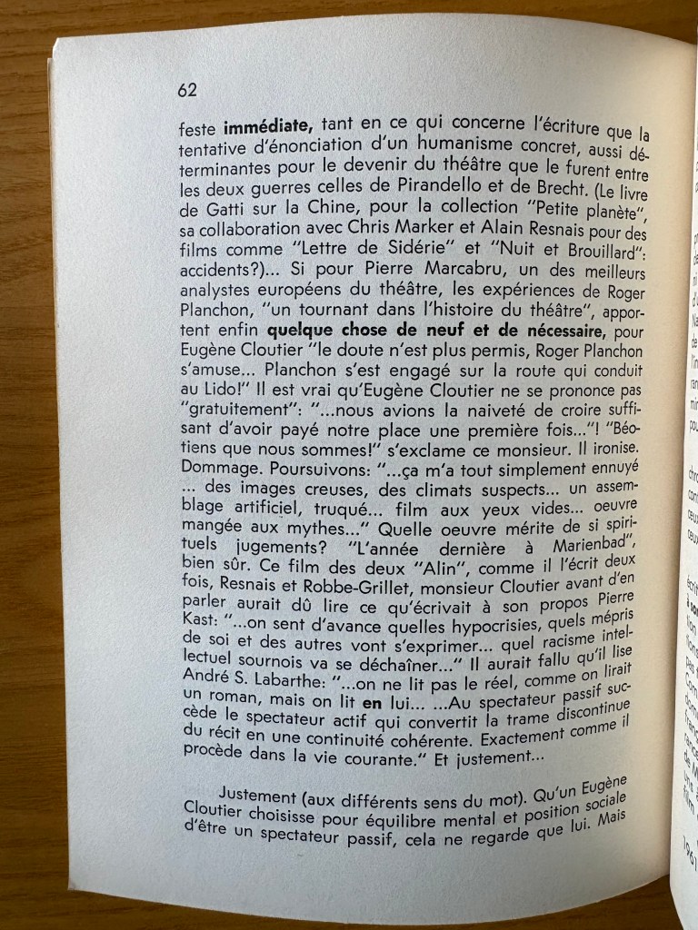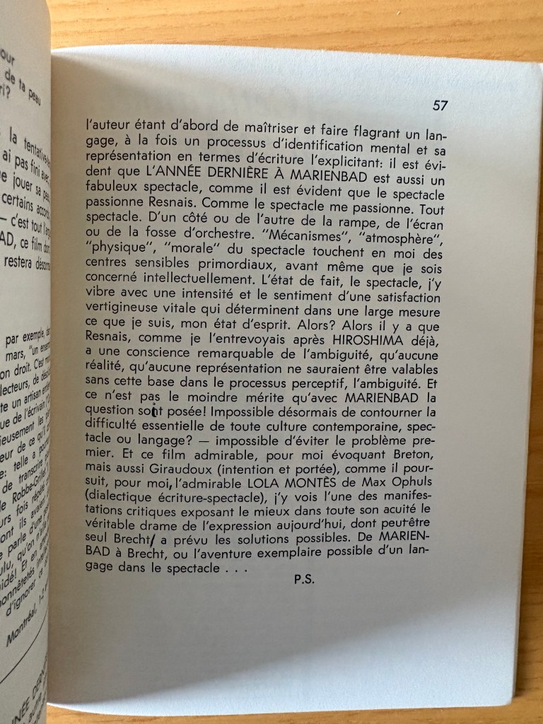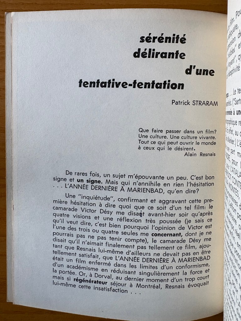 Patick Straram was the editor of this periodical. Two of the three articles written by Straram (those relevant to Resnais’ film) are present: