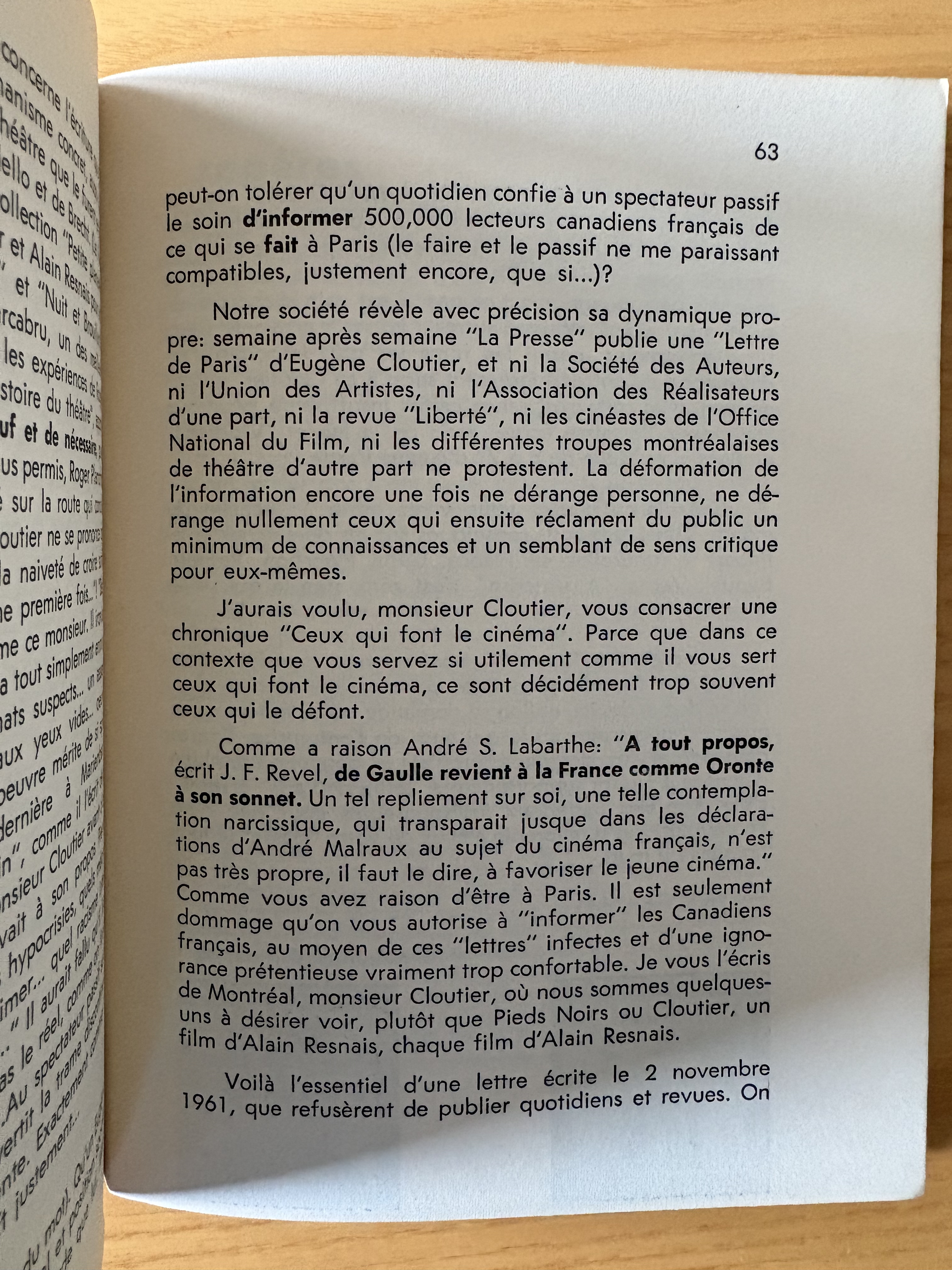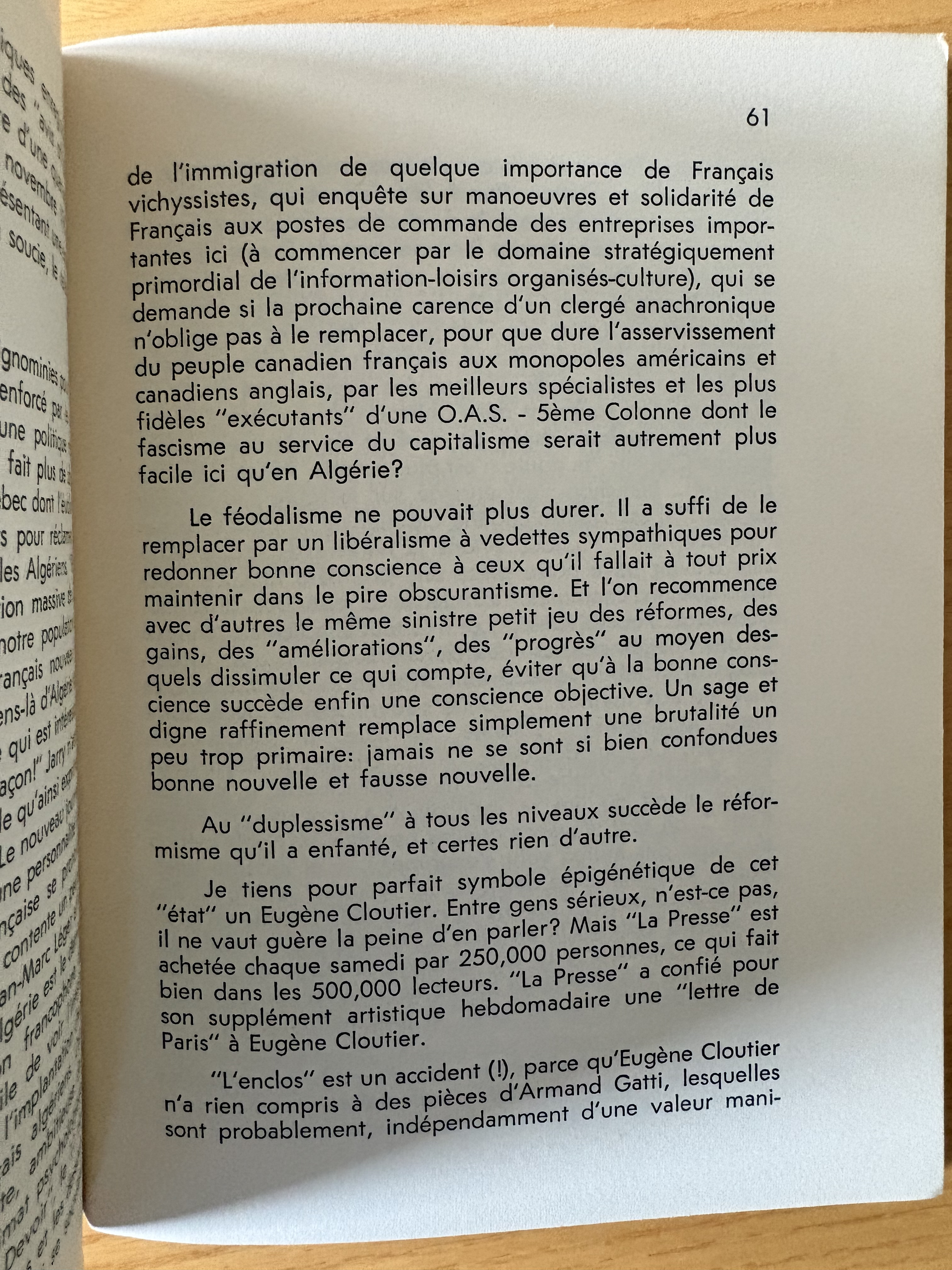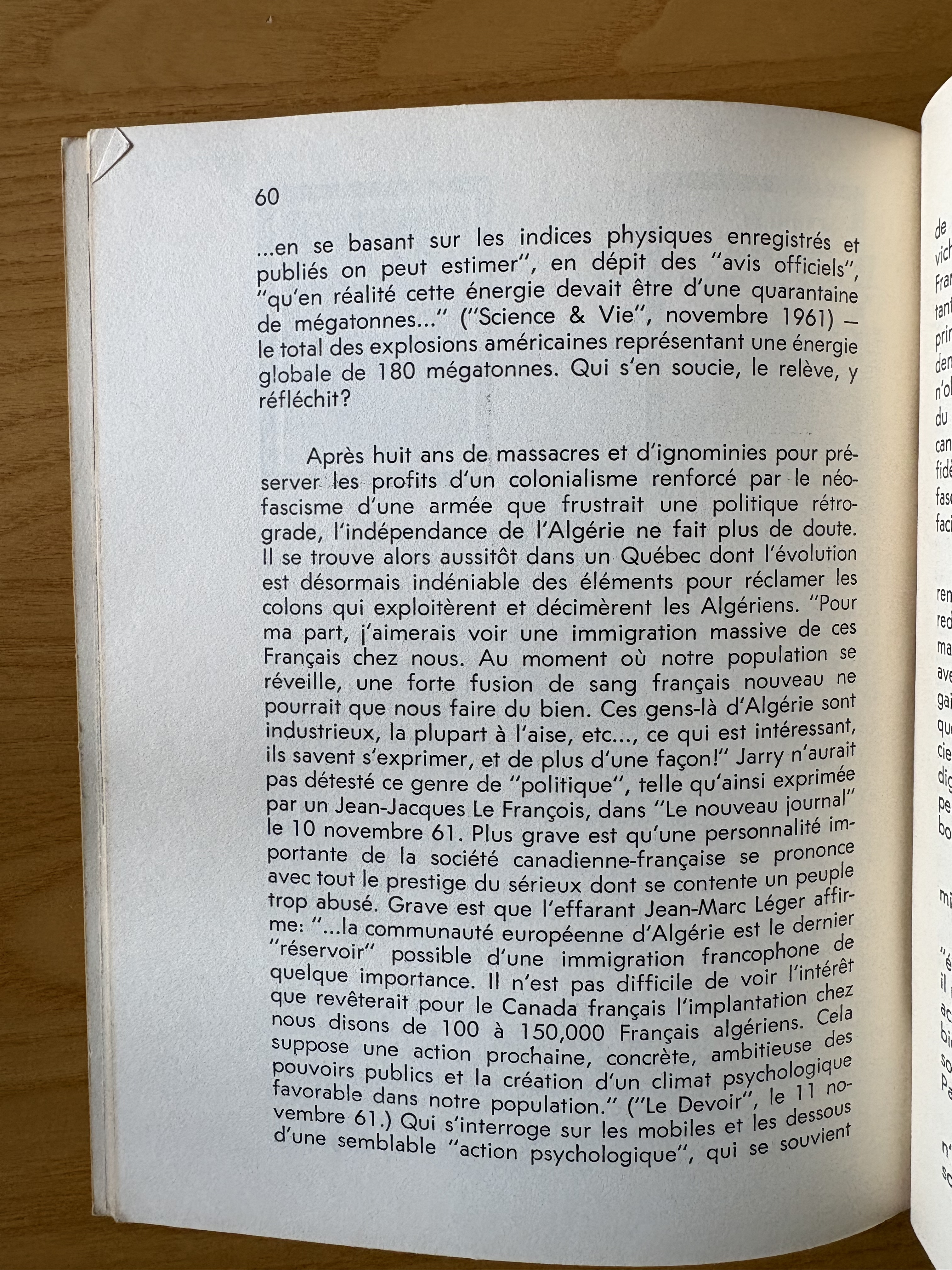 “Lettre de Montreal” (p.58-64), Staram’s take on the climate in Quebec and around the world in 1962