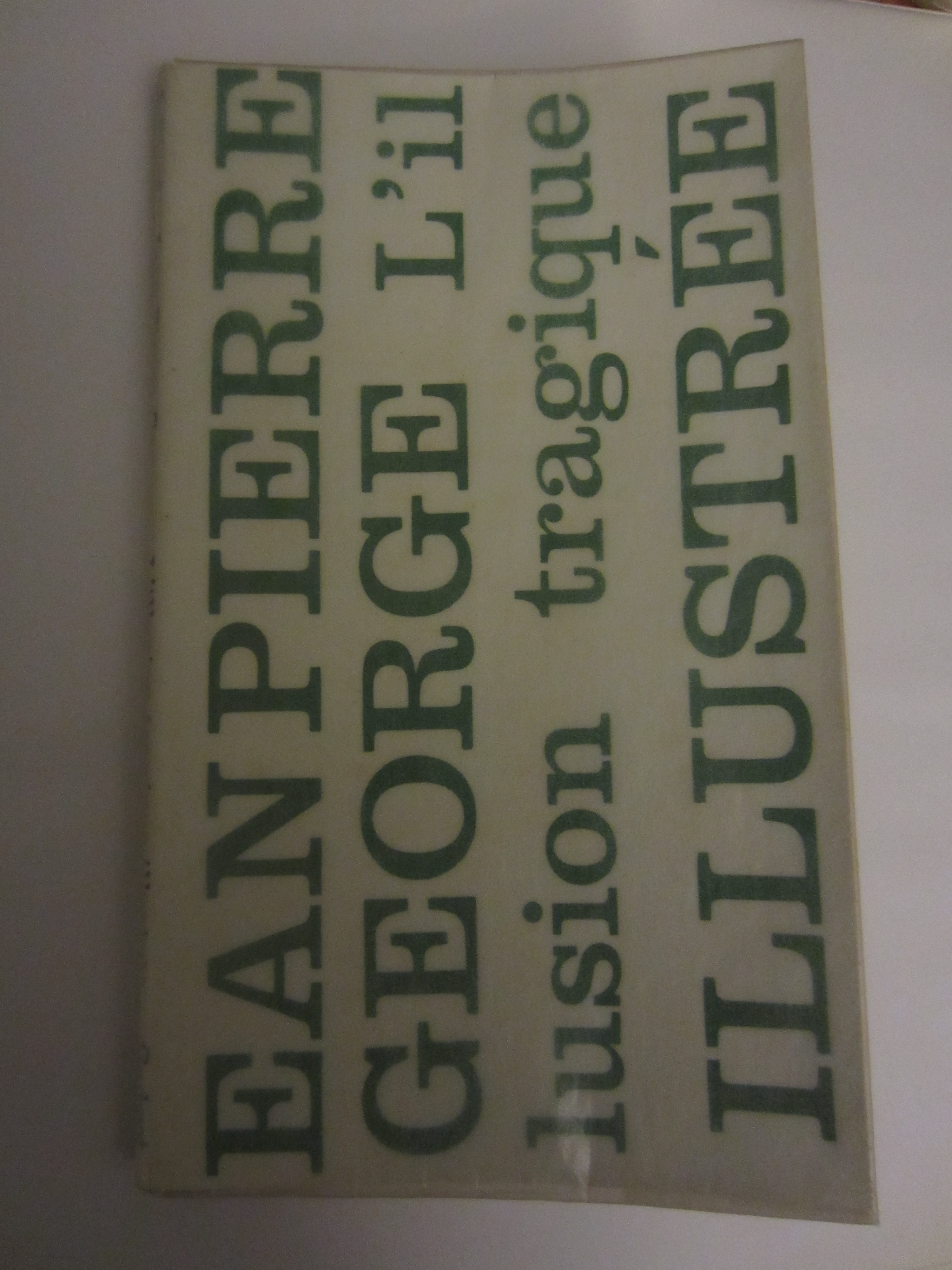 George, Jean-Pierre. L’illusion Tragique Illustree: Gadget…Paris: Julliard, 1965. Book. 21 cm x 12 cm; printed cover in white with text in blue (front cover) and green (back cover). Inside text and illustrations printed in black on pink paper.