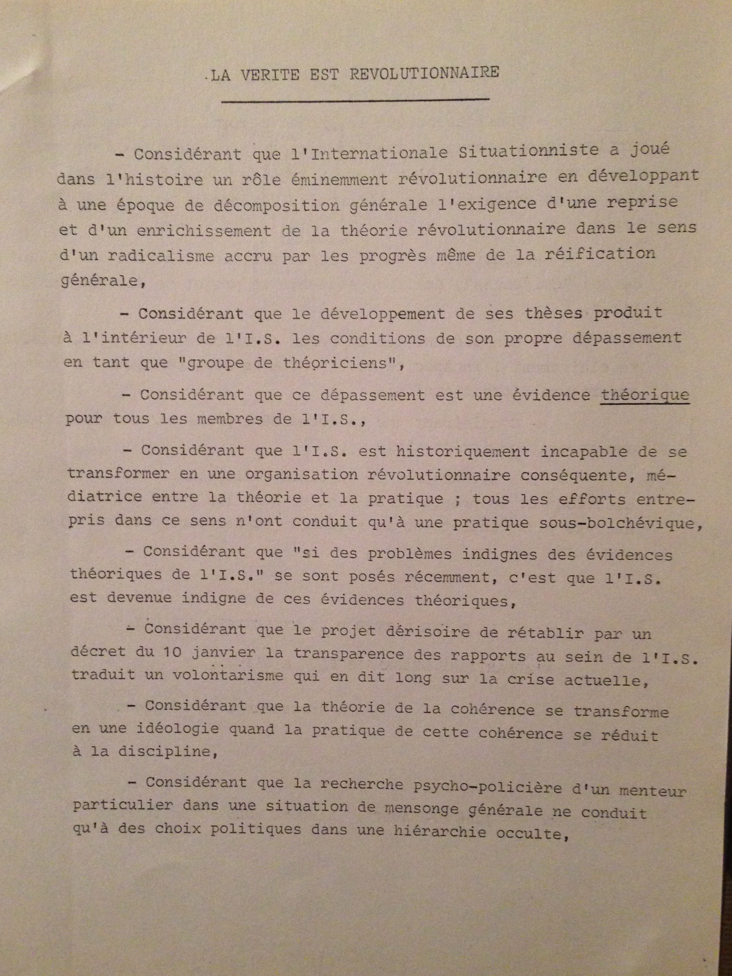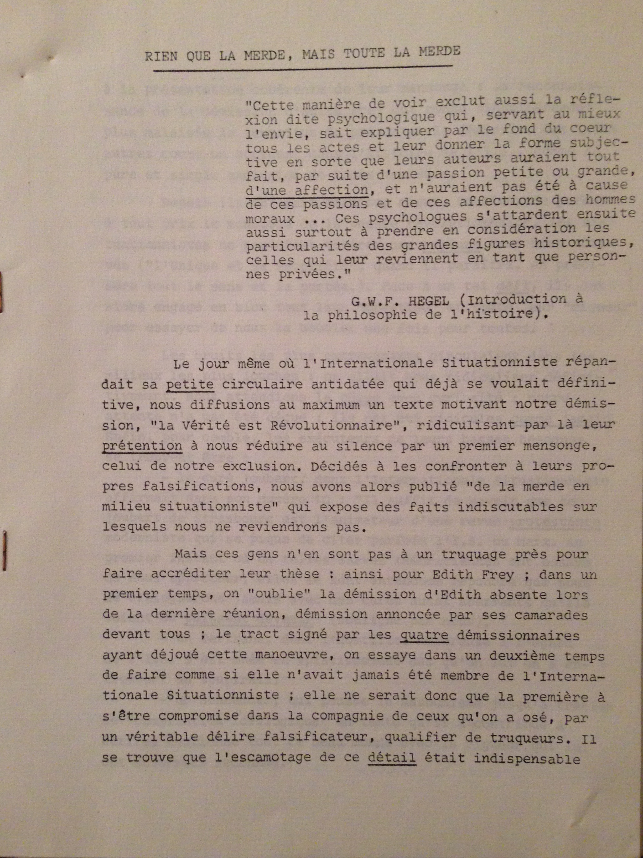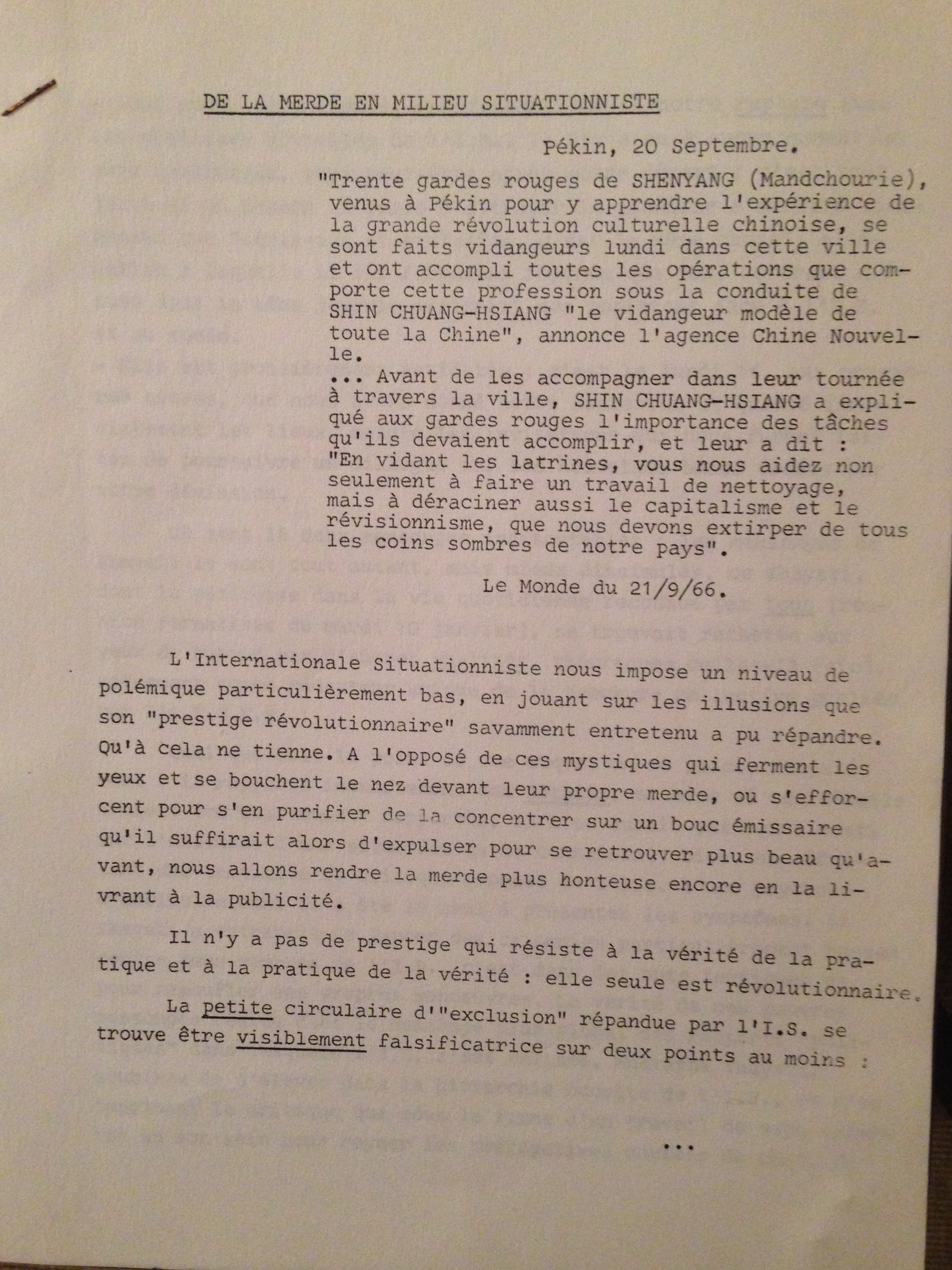 5) “Rien que de la merde, mais toute la merde” offers a more in-depth criticism of the S.I and Debord in particular. It is dated 2 February 1967 (5 page leaflet)