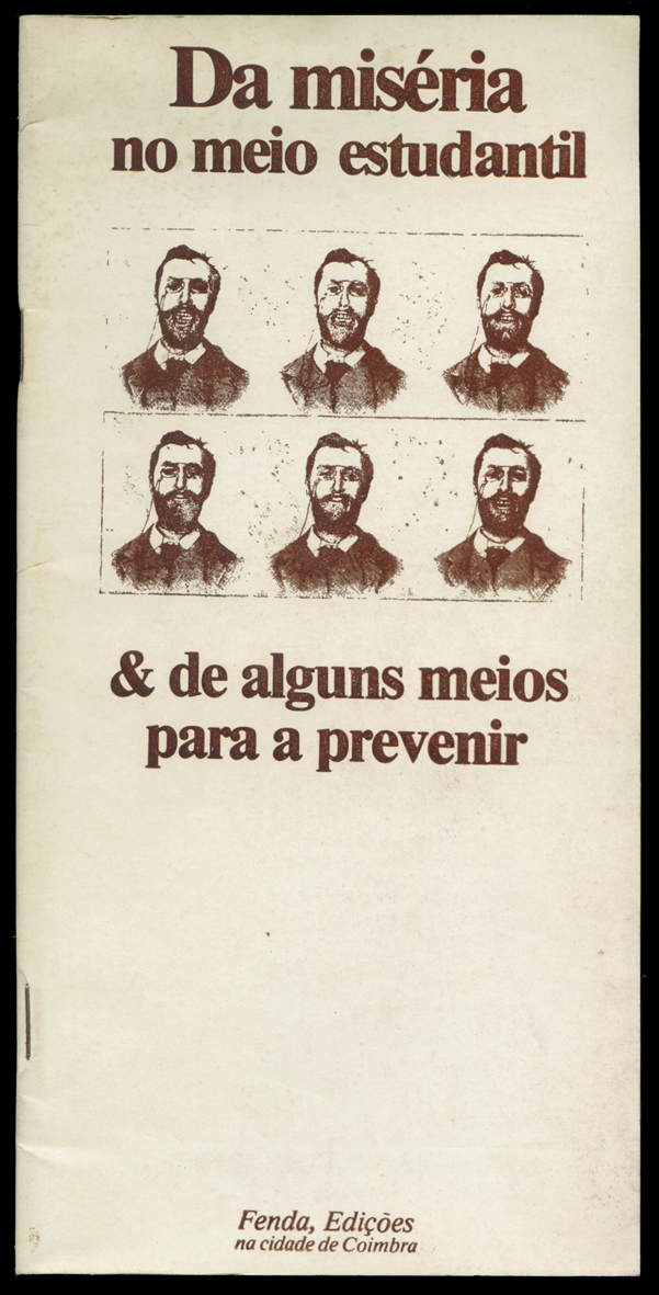Khayati, Mustapha / Internationale Situationniste. Da Miseria No Meio Estudiantil. Coimbra (Portugal): Fenda, 1983. 44 p.; 21 x 10.5 cm; illustrated light brown wrappers with 6 portraits and text in dark brown