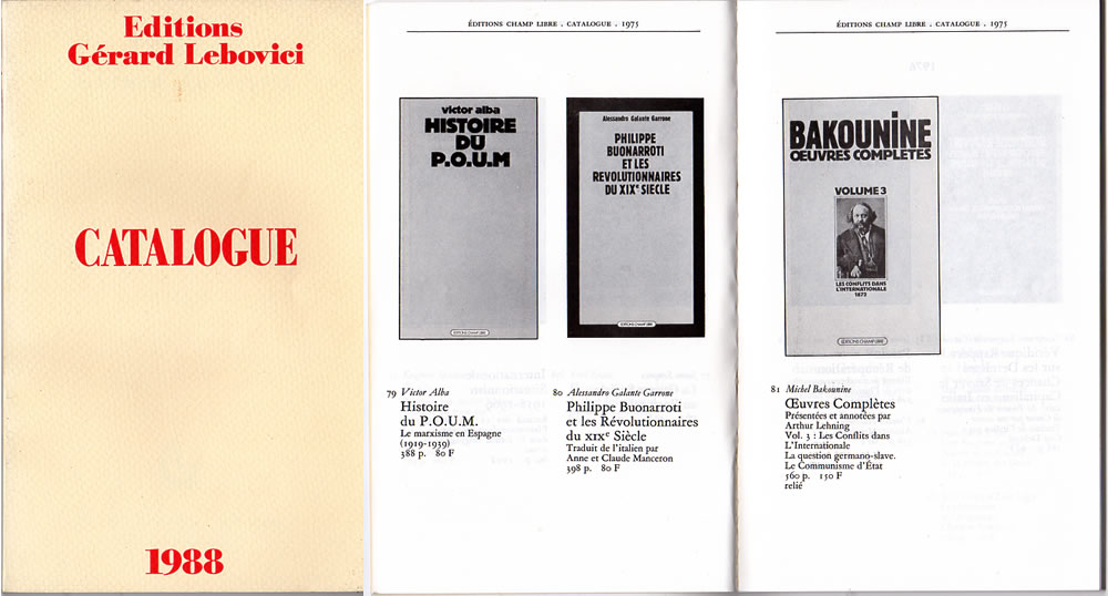 Over the course of its history, Champ libre published works by many authors that were dear to Guy Debord, such as George Orwell, Baltasar Gracian, Clausewitz, Jorge Manrique, Bakounine, etc.