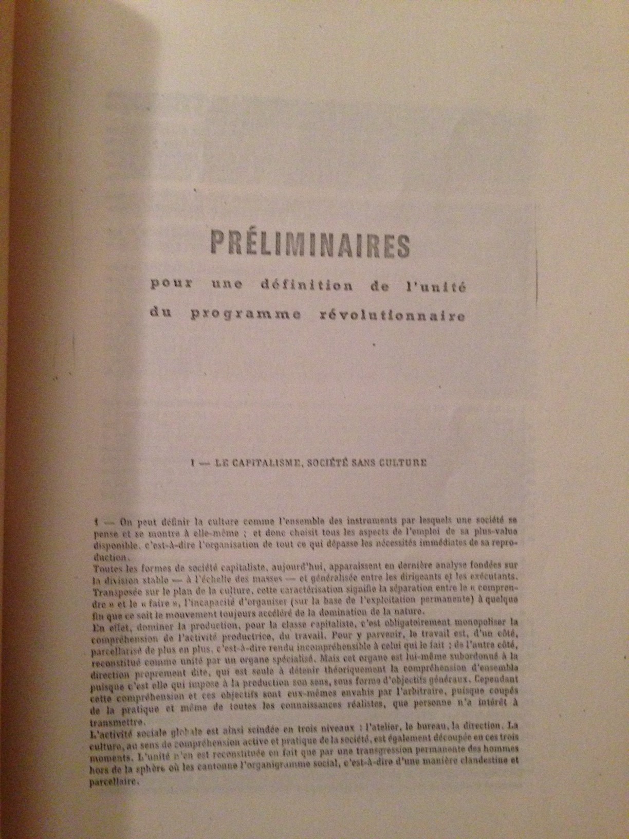 Debord, Guy; Vienet, Rene; Vaneigem, Raoul. Preliminaires pour Une Definition de l’Unite du Programme Revolutionnaire…n.p. [Paris, France?]: Les Editions de Nulle Part, n.d [1960s or 1970s]; n.p. [32 p.], 21 x 30 cm..; white wrappers with text in black.