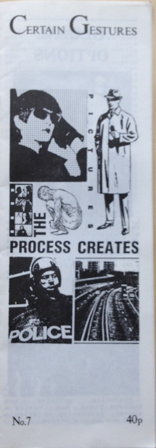 [Tiffen, David and James, Andrea] Certain Gestures no.7. n.p. [Hamtpon, United Kingdom]: n.p. [Aldershot], n.d. [1980s]. n.p. [16p.]; ill.; 29.5 x 10.5 cm. Illustrated B&W wrappers with text in black. Profusely illustrated.