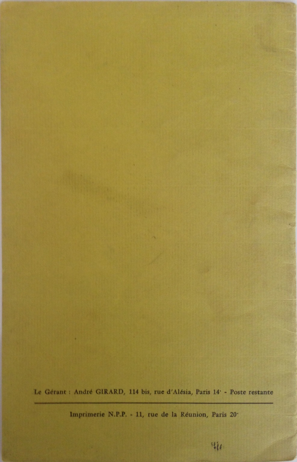 Pamphlet inspired by Mustapha Khayati’s “De La Misere en Milieu en Etudiant”, (released amidst scandal 3 years earlier in Strasbourg), and published as a Supplément to issue 4 of the magazine “Passer Outre” (a Maspero imprint)