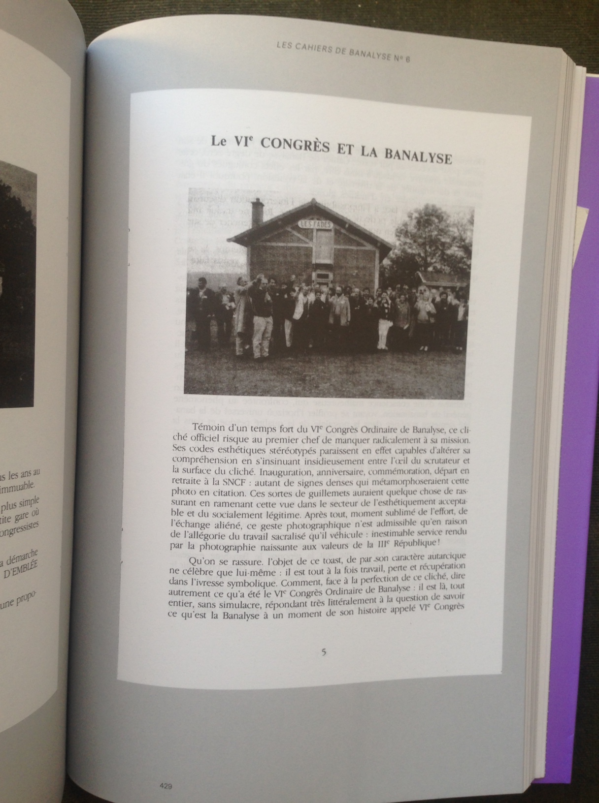 But what is the Banalyse, and why does it matter? I have translated a short introduction from the publisher (it can be found here; http://www.lejeudelaregle.fr/skin2014/frame3.php): “Under the auspices of the Cahiers de Banalyse, Pierre Bazantay and Yves Helias founded, in 1982, the Ordinary Congress of Banalysis. The principle was such: participants were to join the Congress, which took place on the tracks of a small train station called Les Fades, in the Puy-de-Dome (France). However, the only activity scheduled for the aforementioned Congress consisted in waiting for other participants who had yet to arrive via train…In accordance with the upfront commitment, the Congress occured every year for 10 years, on the third weekend of June. The Congress stood as the first example of a type of propositions that combined an experimental perspective on the banal and critical outlook of institutions” (translation is mine)