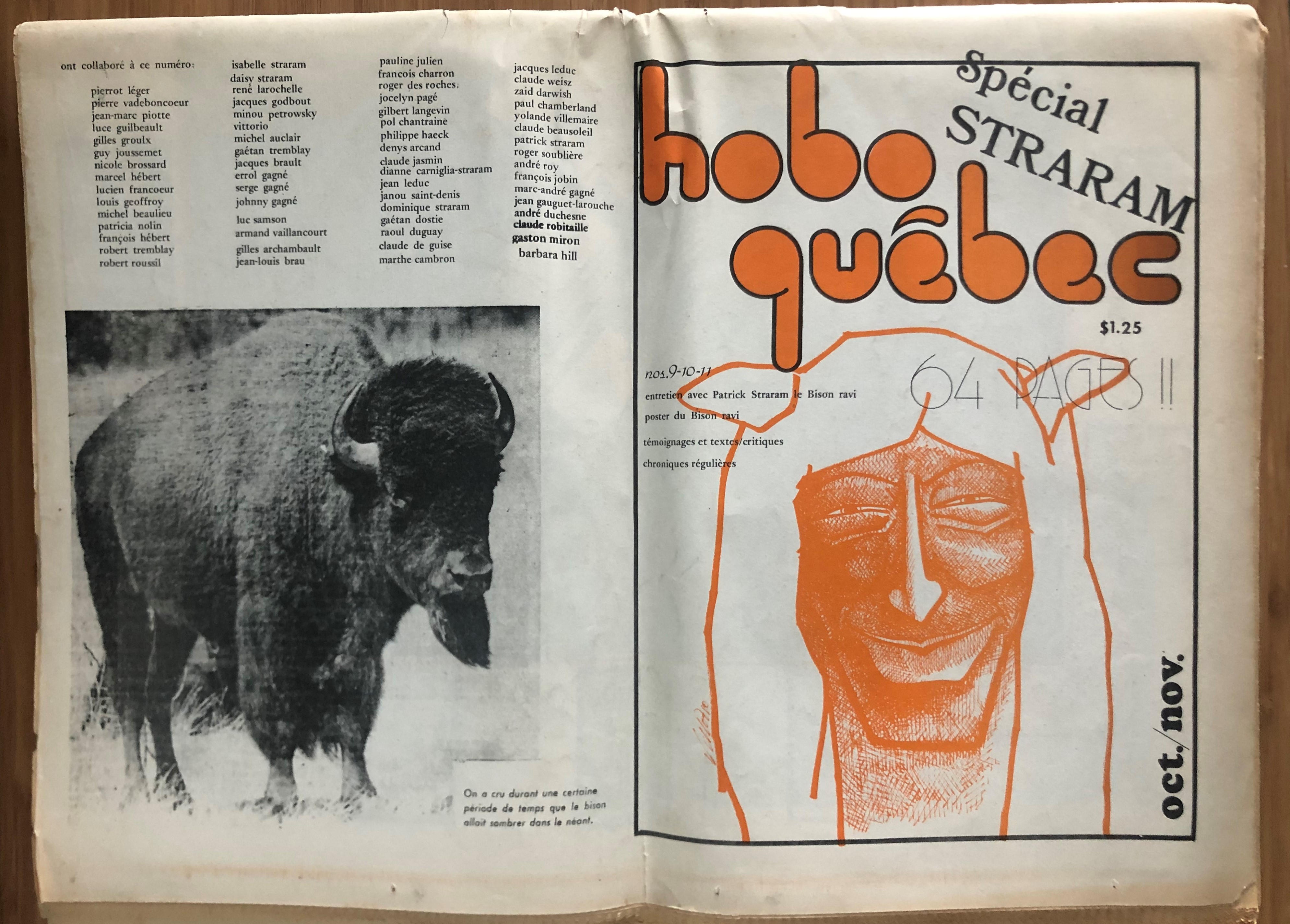 Hobo Quebec 9-10-11: Special Straram. Montreal, Oct-Nov 1973. 64 p.; ill.; 39.5 x 29 cm.; ill. Wrappers with photograph of Straram.