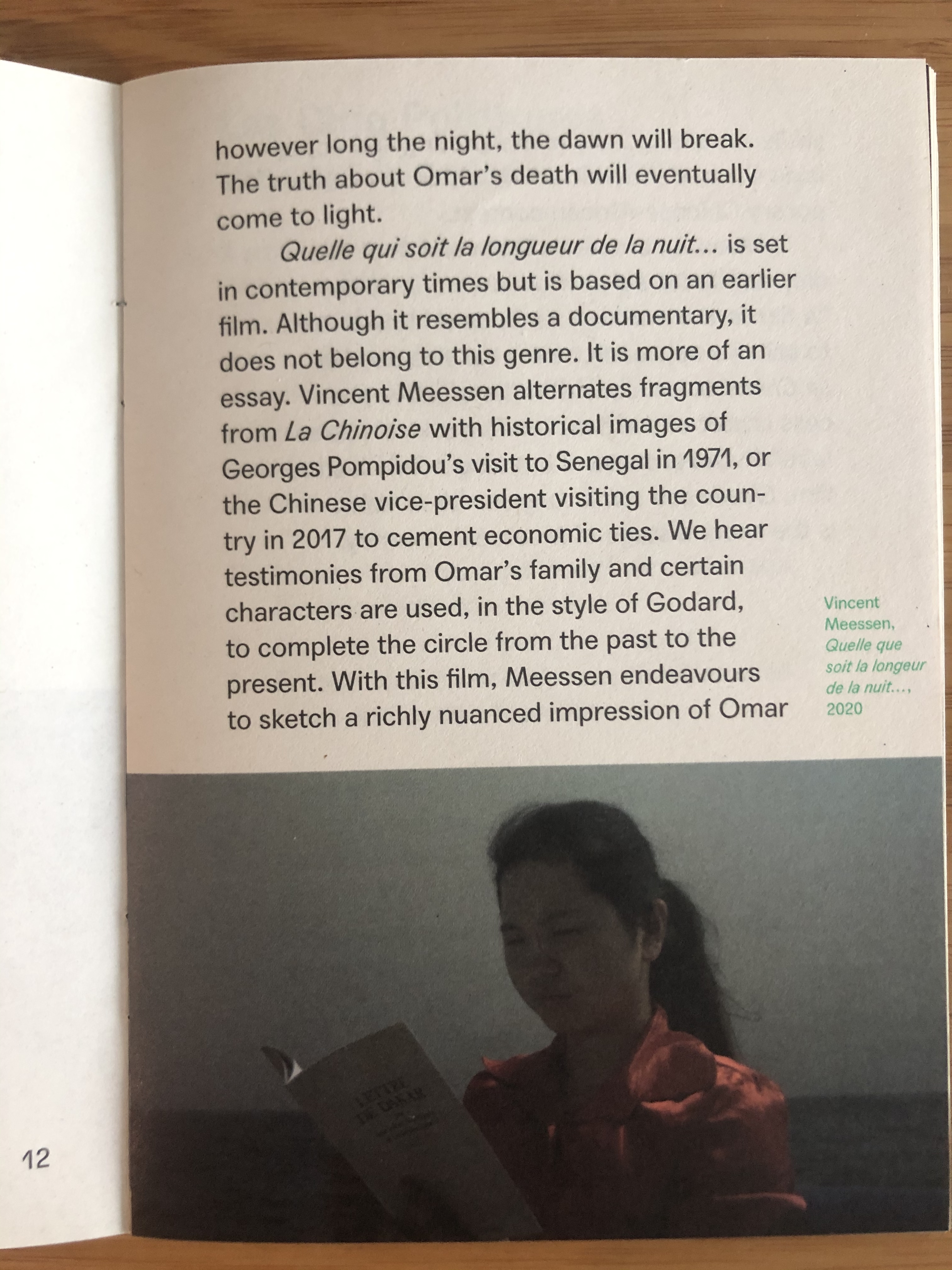 Quelle que soit la longueur de la nuit…le soleil finit toujours par se lever : a film by Meessen that serves as an homage to Diop, who was captured and believe to have been murdered by the Senegalese government