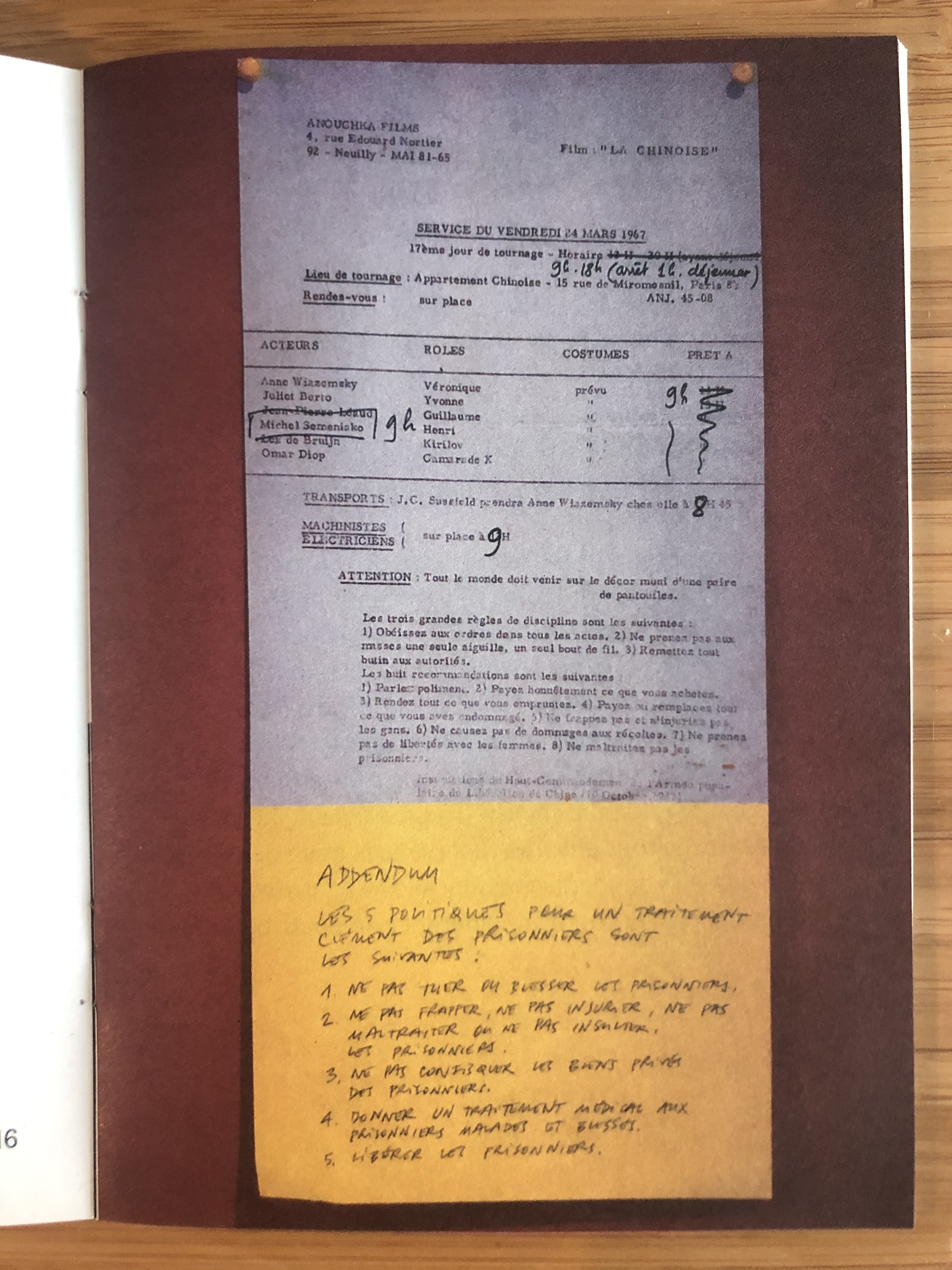 Les Cinq Politiques : Meessen’s detournement of Jean Luc Goard’s instructions for the smoothing running of a location shoot for La Chinoise)