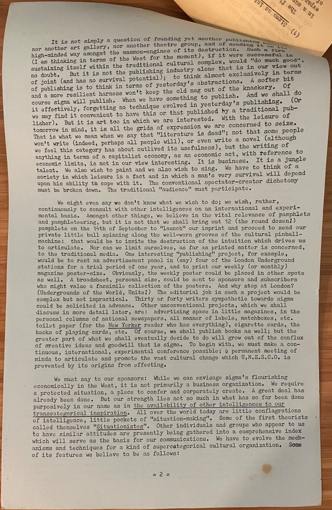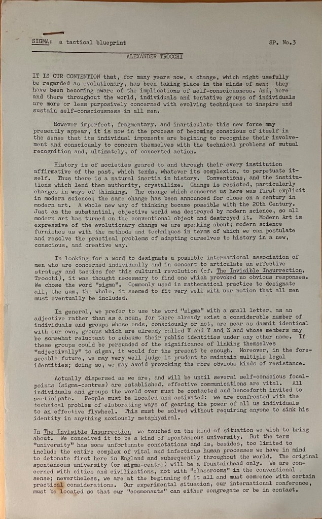 Photograph of Trocch seated at his desk and who appears to be sealing envelopes. Perhaps the writer is getting ready to mail the latest issue of Sigma? Photograph by John Hopkins