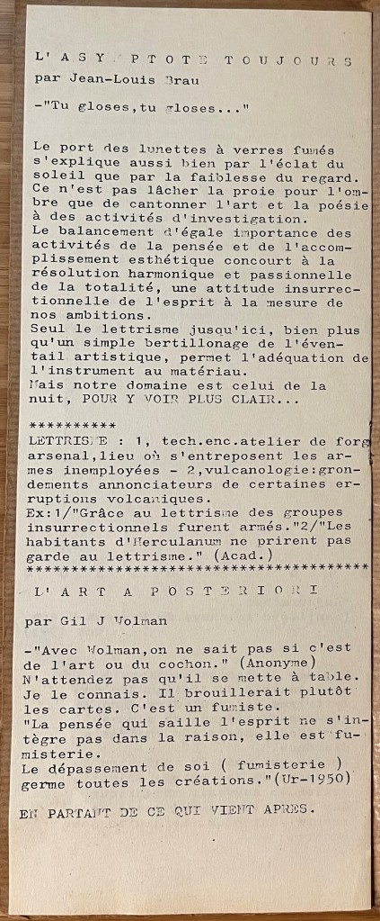 See Frédéric Acquaviva (Ed.), Lettrist Corpus: The Complete Magazines (1946-2016), p. 117.