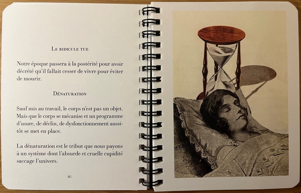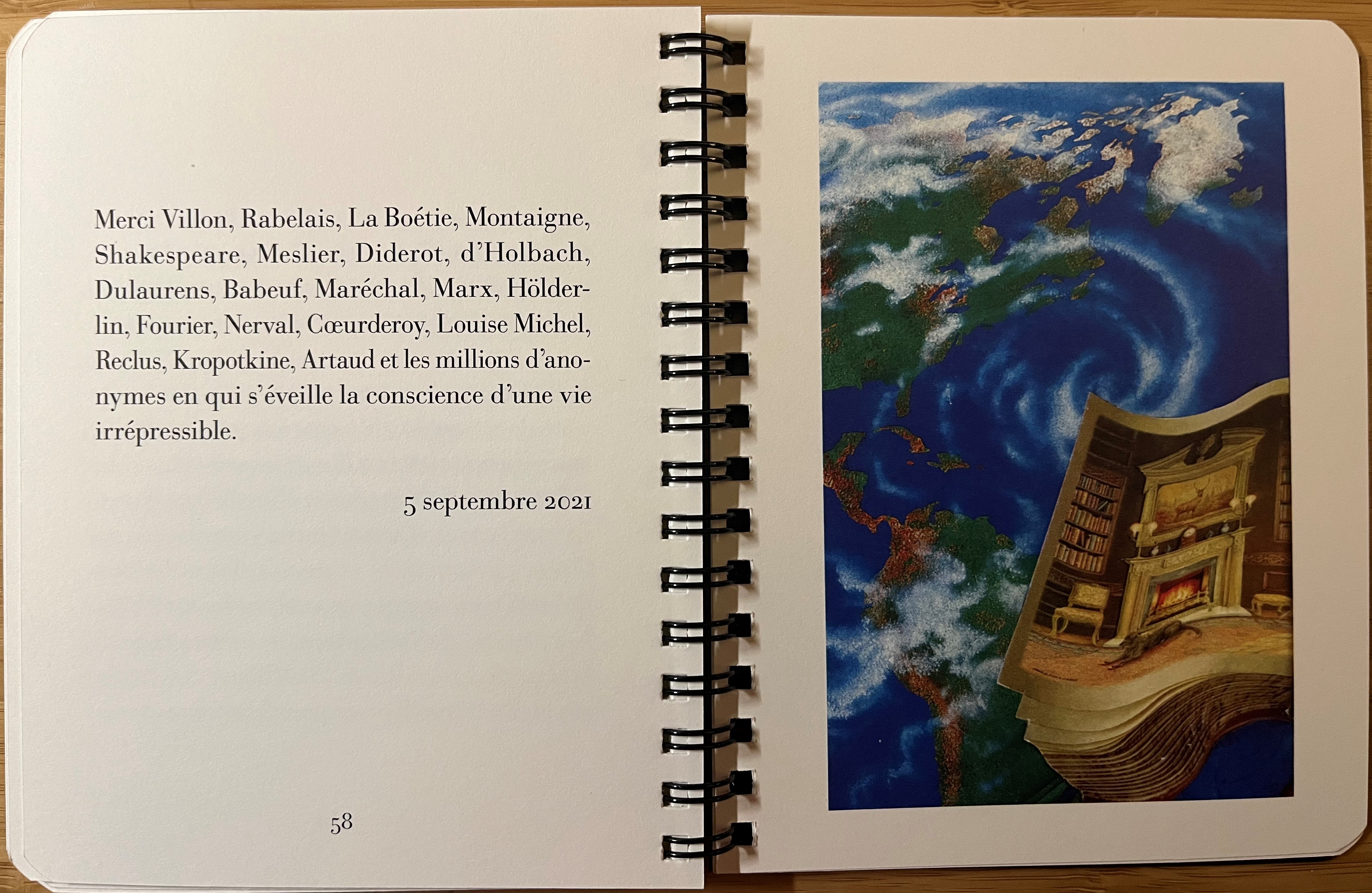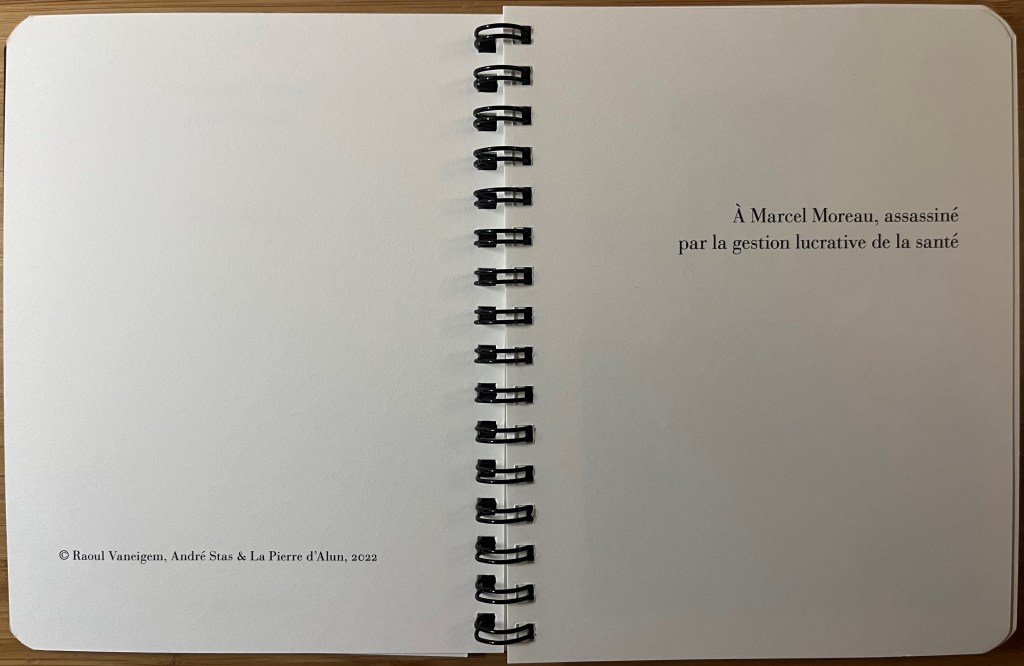 This artist book includes aphorisms by Vaneigem and collages by artist André Stas. It was printed in 500 copies. An additional third copies, numbered and signed by the artists, feature an original print by Stas and are housed in a black slipcase embossed with gold lettering. Ours is copy number 9.